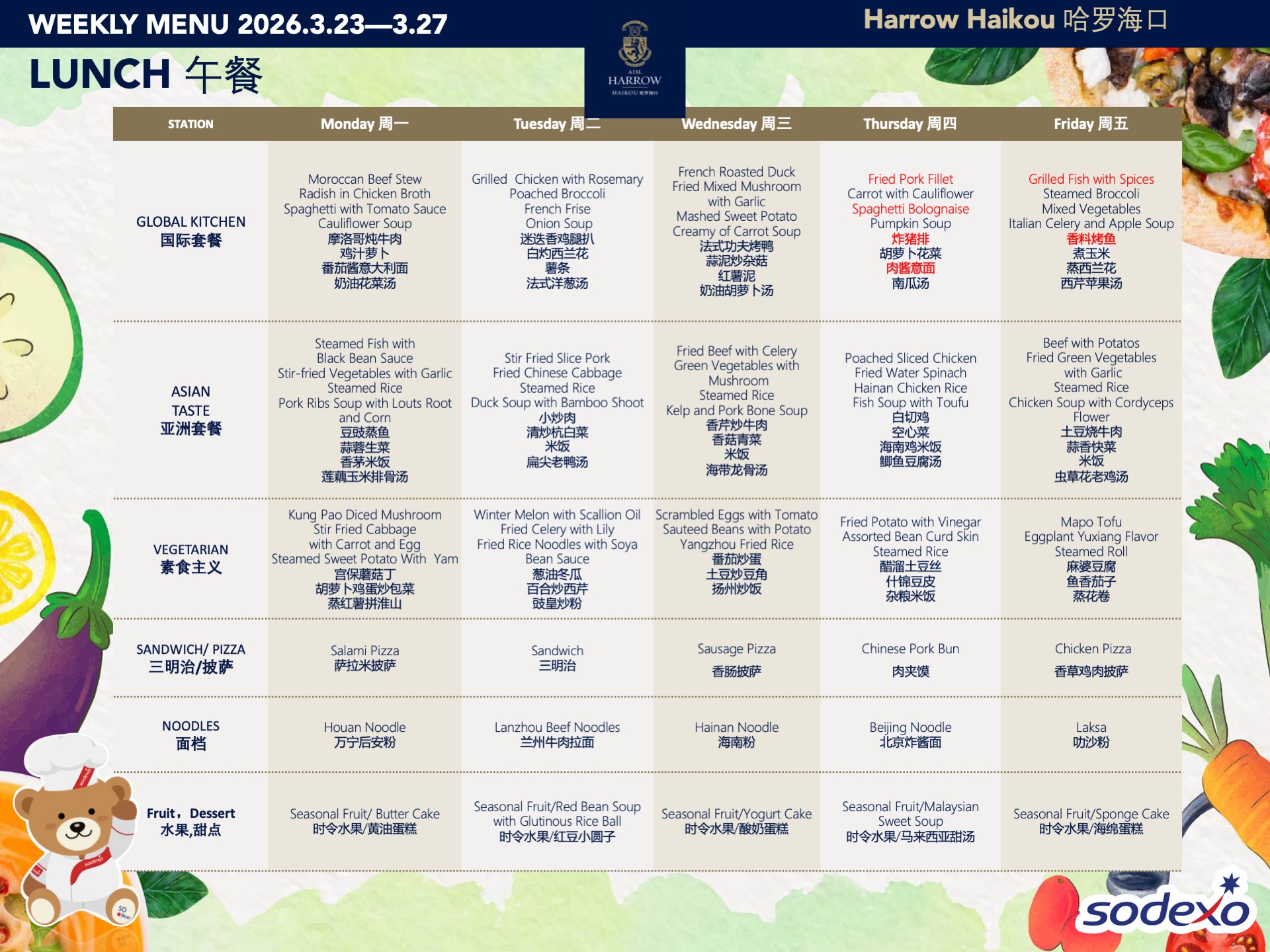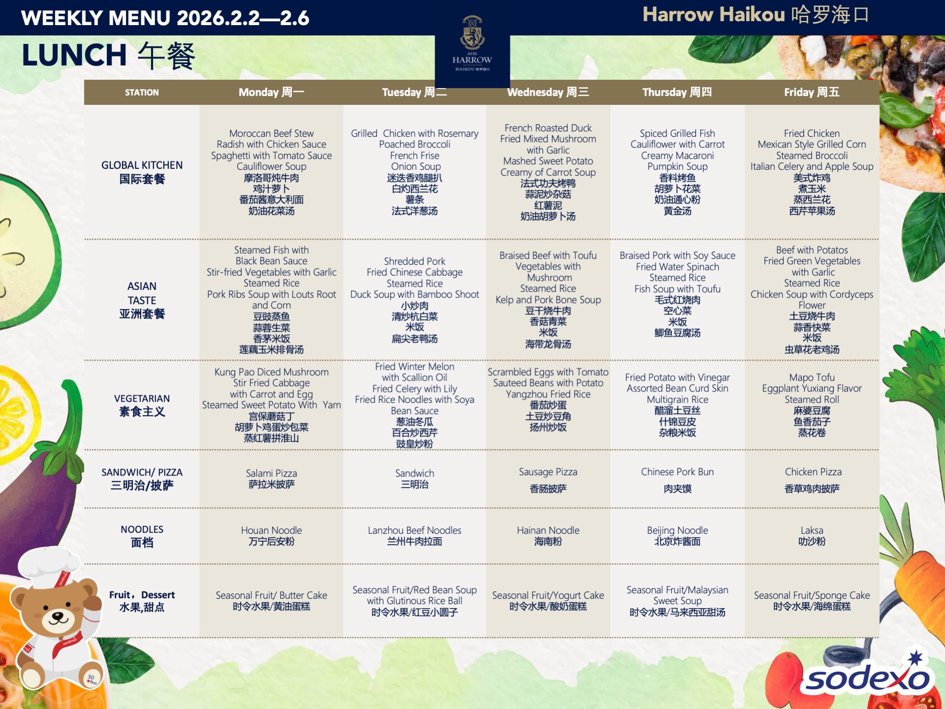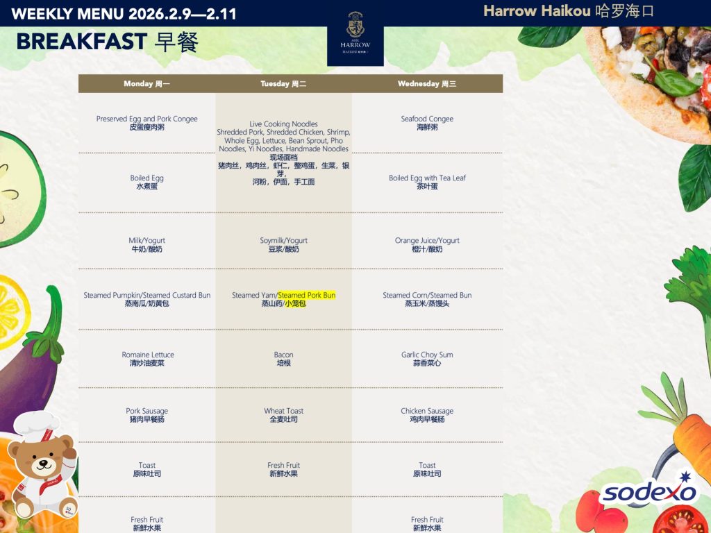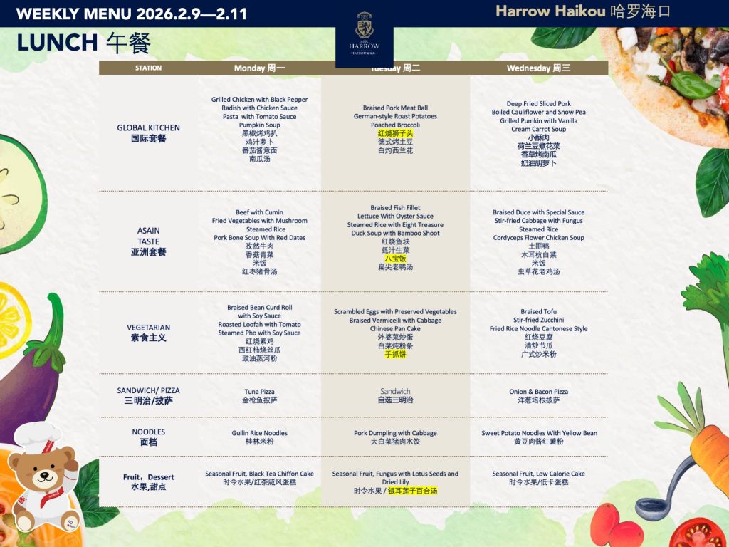 - 在学校SLT(高级管理团队)的监管下,食物委员会制定并定期调整学校菜单,以确保饮食的健康与营养均衡。