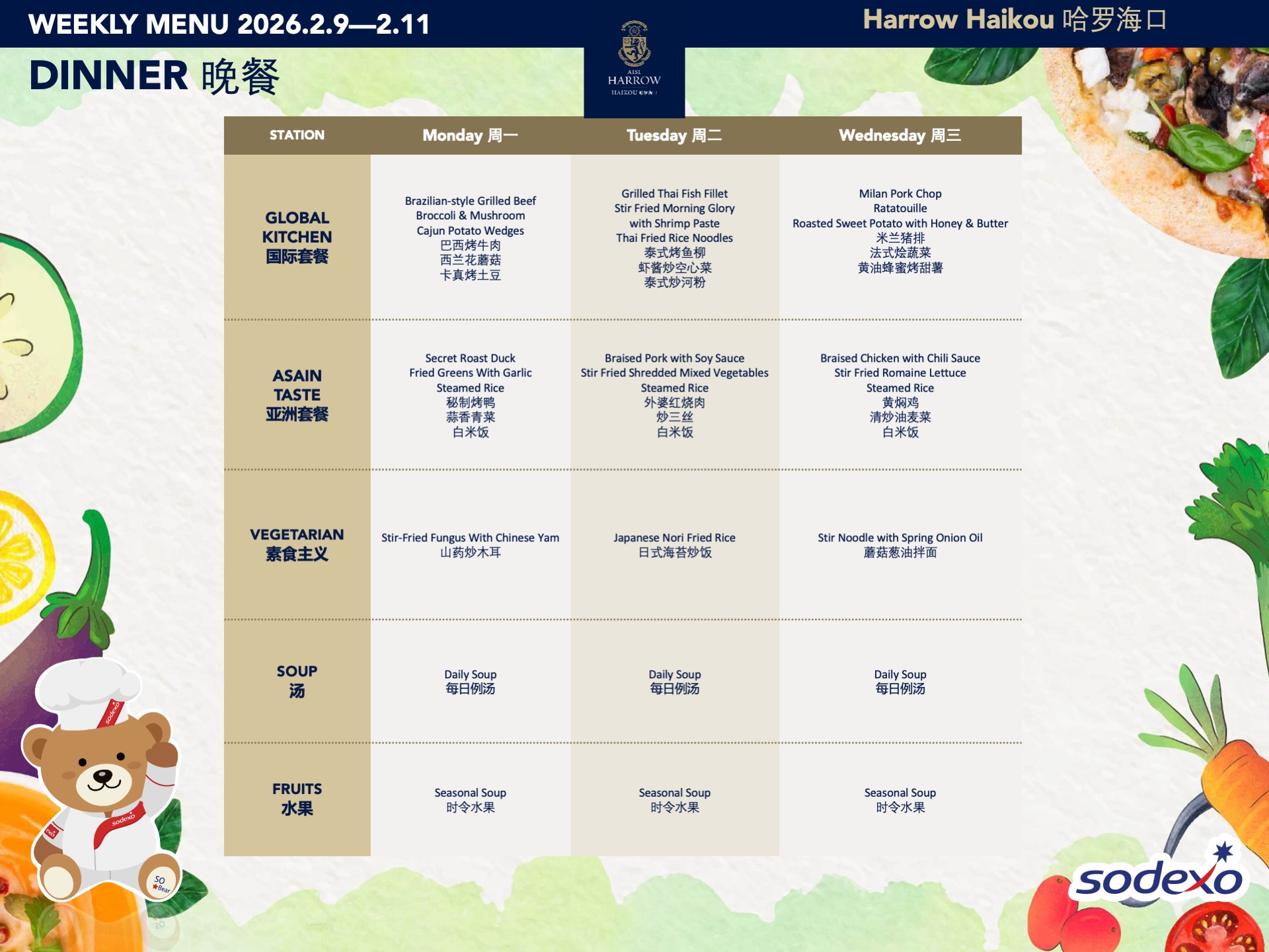 Sodexo索迪斯是我们目前合作的餐饮公司,这是一家全球领先的餐饮服务公司,于1966年成立于法国,自1995年起在中国开展业务。他们不仅拥有多年的行业经验,还致力于为学校的孩子们提供健康、安全、营养且美味的餐食。通过与索迪斯的合作,我们期待能够为孩子们带来更优质的用餐体验。更多信息,请访问其网站:https://cn.sodexo.com