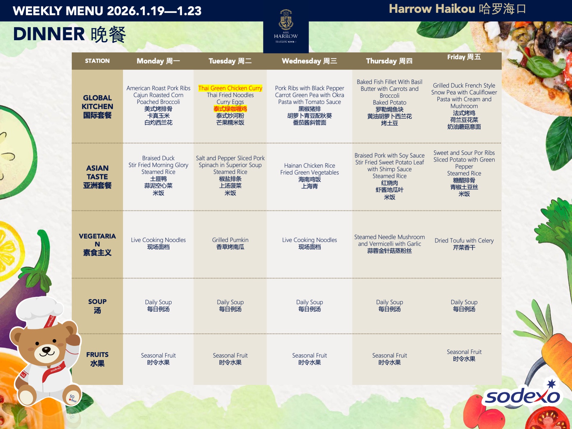 - 在学校SLT(高级管理团队)的监管下,食物委员会制定并定期调整学校菜单,以确保饮食的健康与营养均衡。
