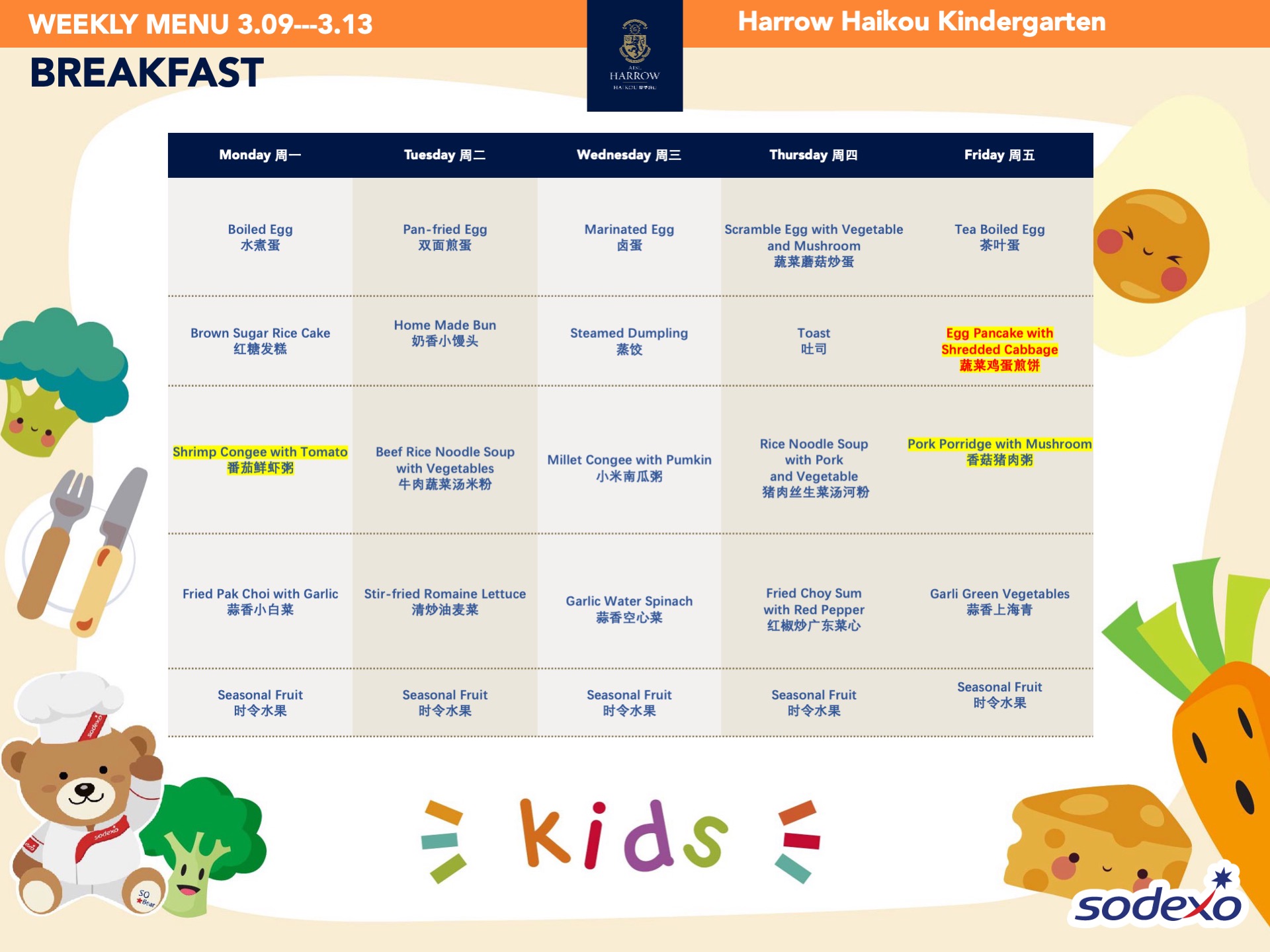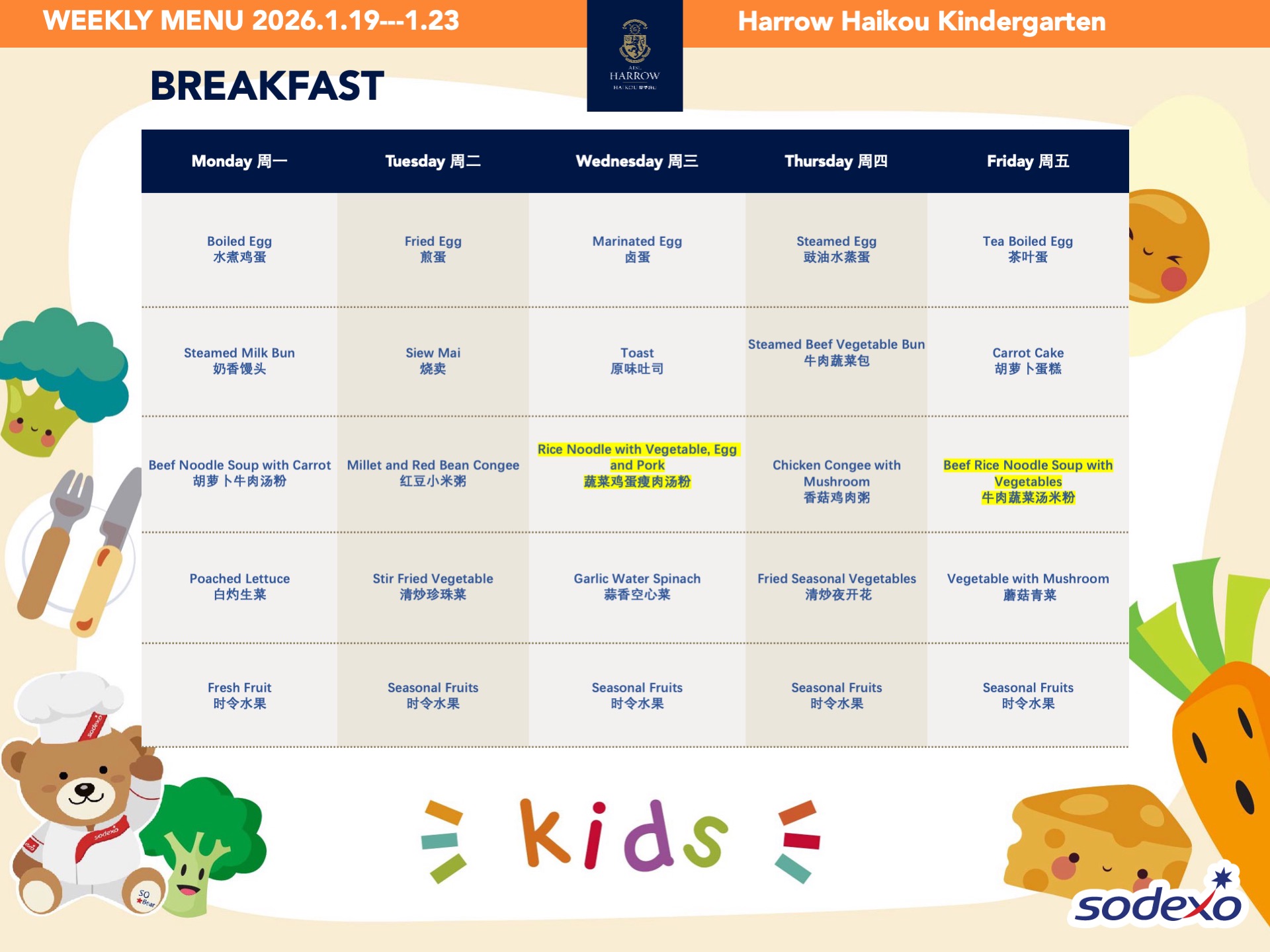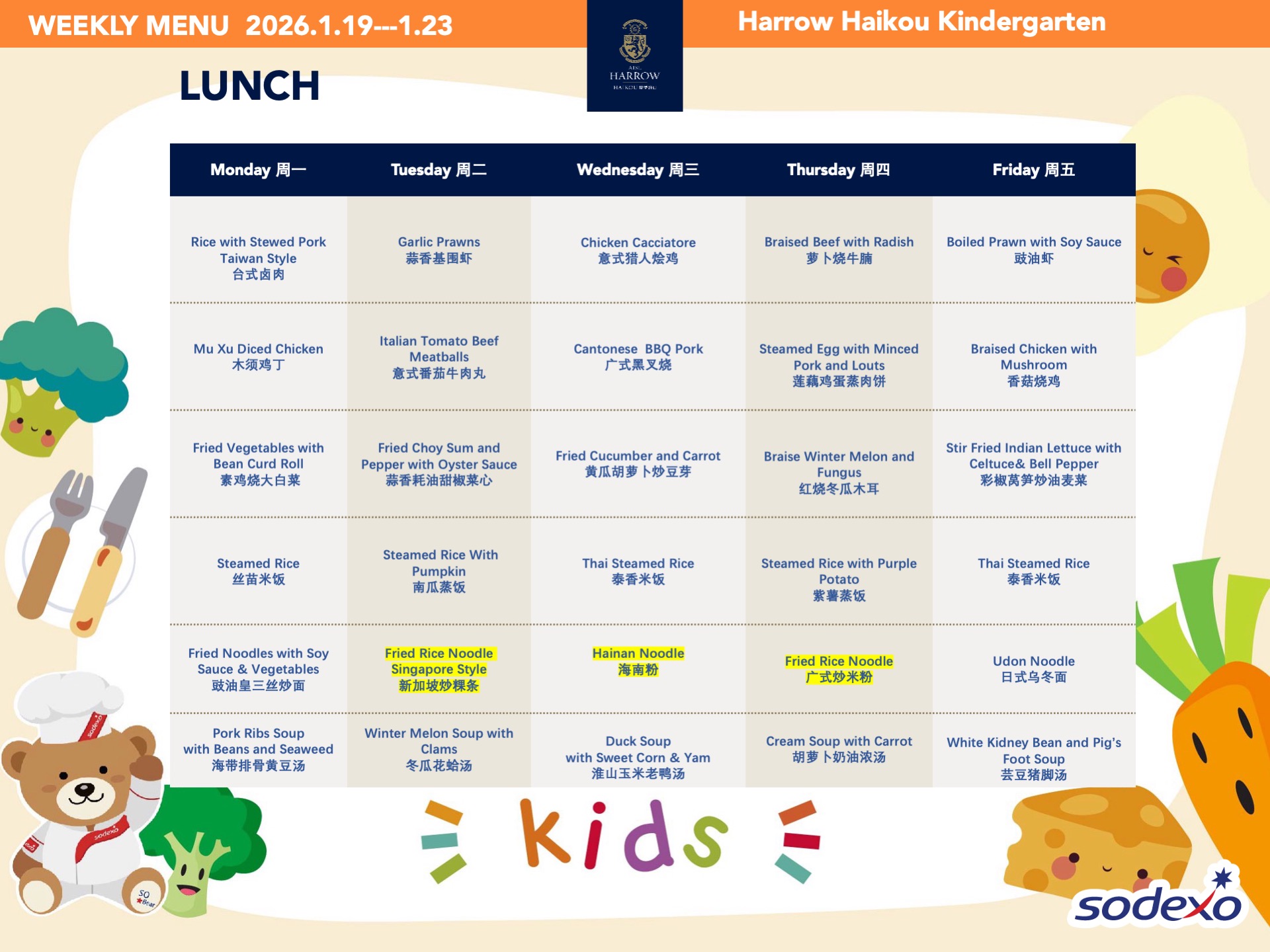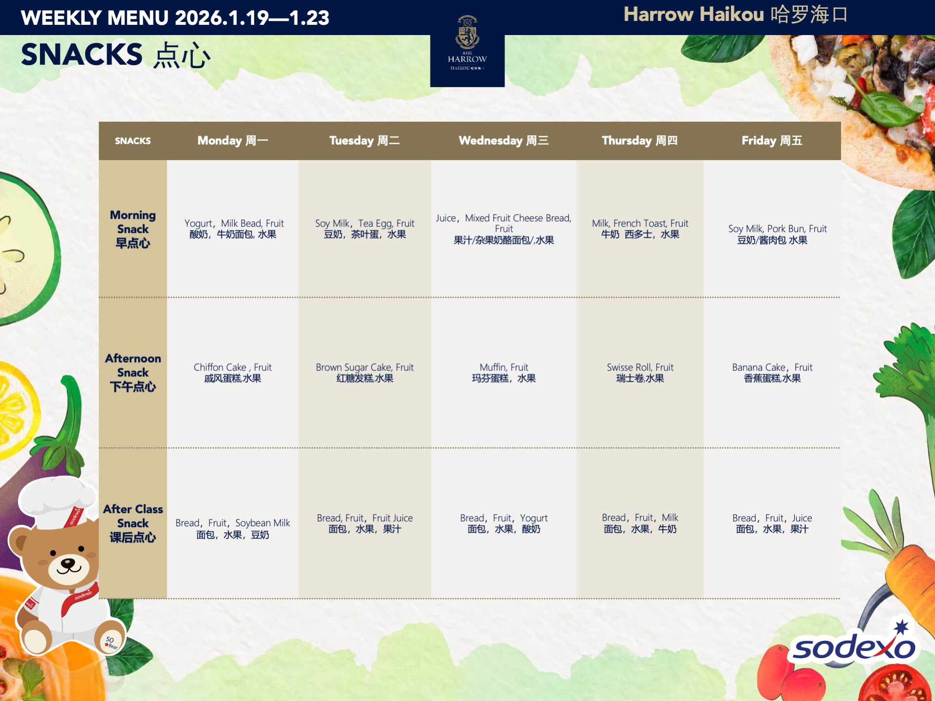 - 学校高级管理团队就午餐及其他食物清单进行定期检查,以确保餐饮质量及其营养平衡。食品药品监督管理局(FDA)和教育局(EDB)为中国的学校提供培训,并规定学校就运营管理餐饮服务所需履行落实的职责和任务。在哈罗海口,我们成立了食品委员会,以保证餐饮质量。委员会每个月有例行的学校菜单制定会议。