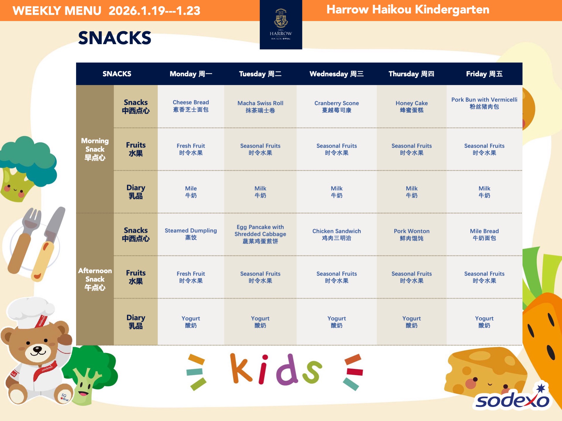 Sodexo索迪斯是我们目前合作的餐饮公司,这是一家全球领先的餐饮服务公司,于1966年成立于法国,自1995年起在中国开展业务。他们不仅拥有多年的行业经验,还致力于为学校的孩子们提供健康、安全、营养且美味的餐食。通过与索迪斯的合作,我们期待能够为孩子们带来更优质的用餐体验。更多信息,请访问其网站:https://cn.sodexo.com